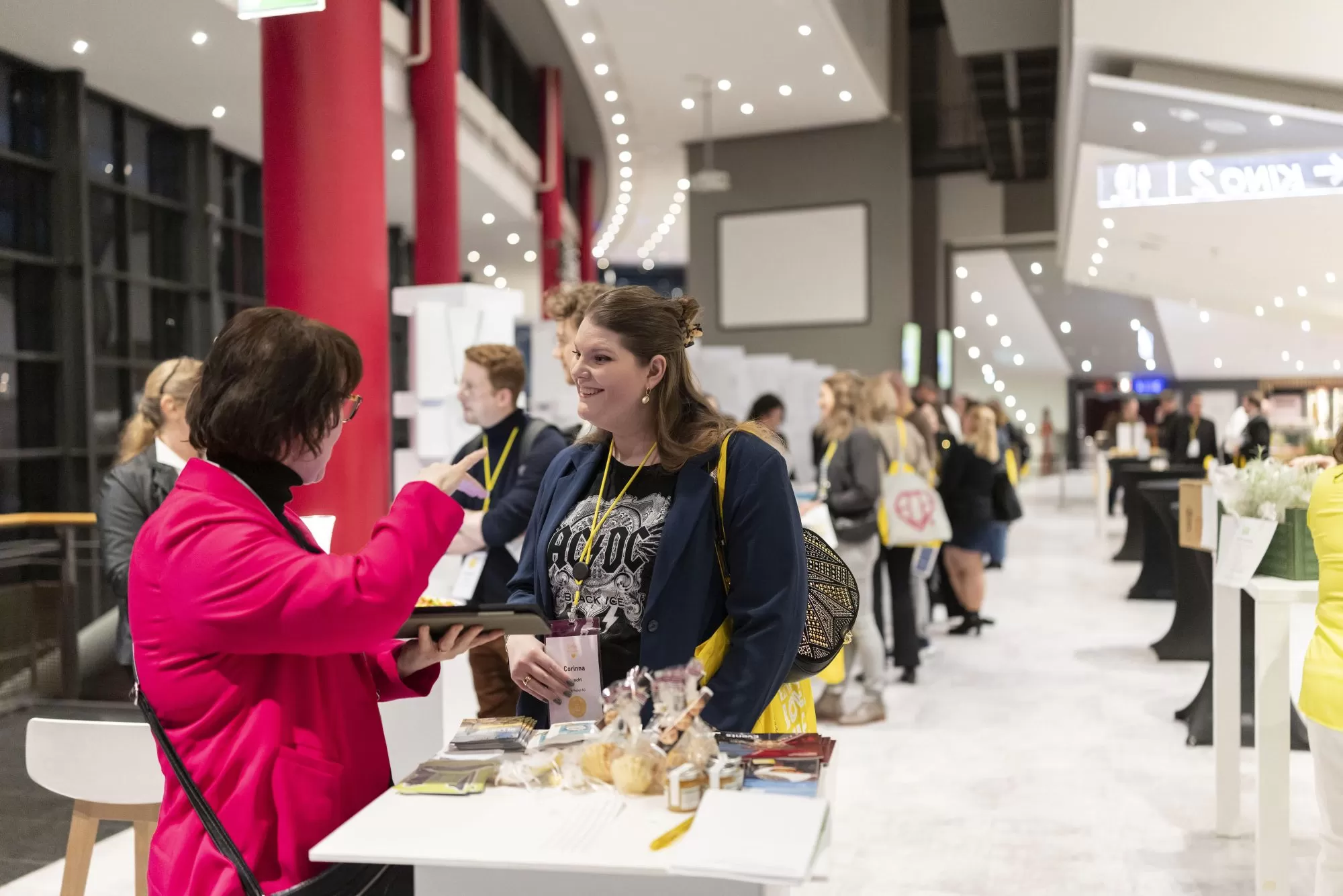 Registratur und Herzlich Willkommen der Gäste bei Häppchen und Drinks