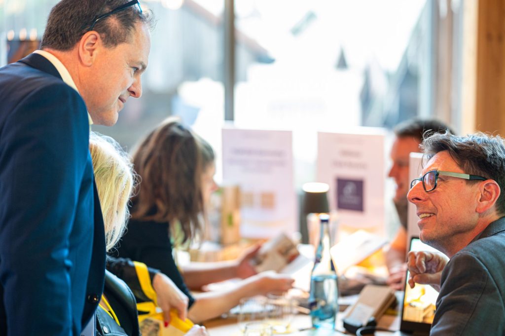 Top-Kontakte auf Augenhöhe: Im eleganten Grand Tirolia Kitzbühel kommst Du ins Gespräch mit Entscheidern, kreativen Köpfen und Branchenexperten – ganz ohne Hürden, aber mit maximalem Impact.