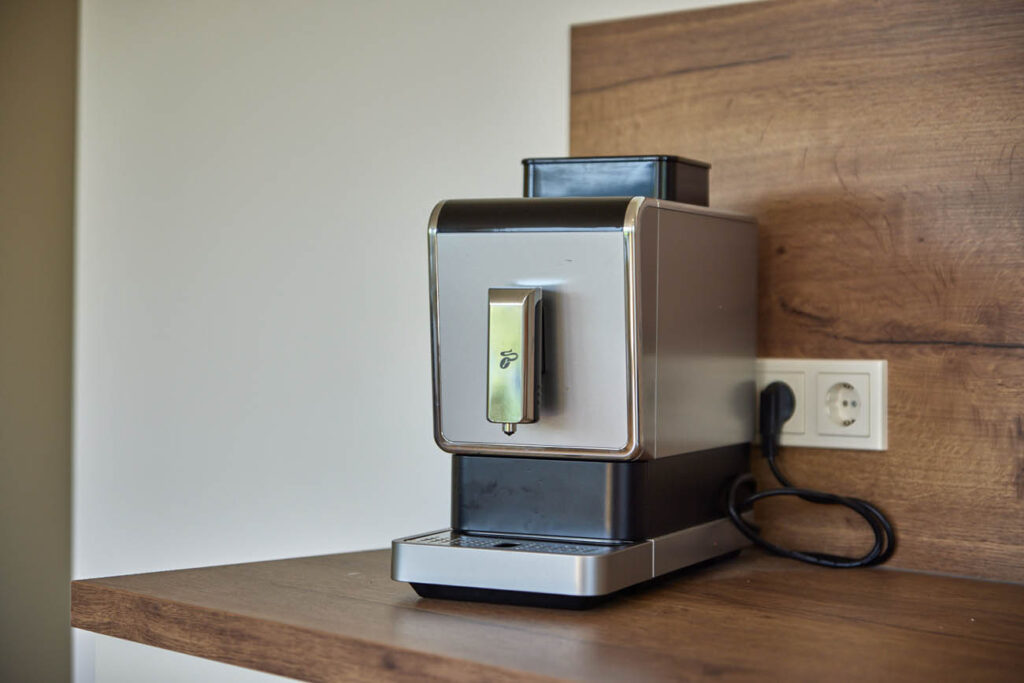 Die komplett eingerichtete Küche läßt keine Wünsche offen: Geschirrspüler, Ofen, große Schubfächer sowie ein Kaffeevollautomat stehen zur Verfügung.