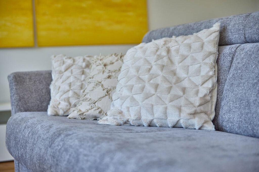 Die Couch bietet mit wenigen Handgriffen einen zusätzlichen Schlafplatz von 1,60 Breite. Hierbei handelt es sich um eine separate Federkern-Matratze. Die Bettwäsche befindet sich im integrierten Bettkasten.